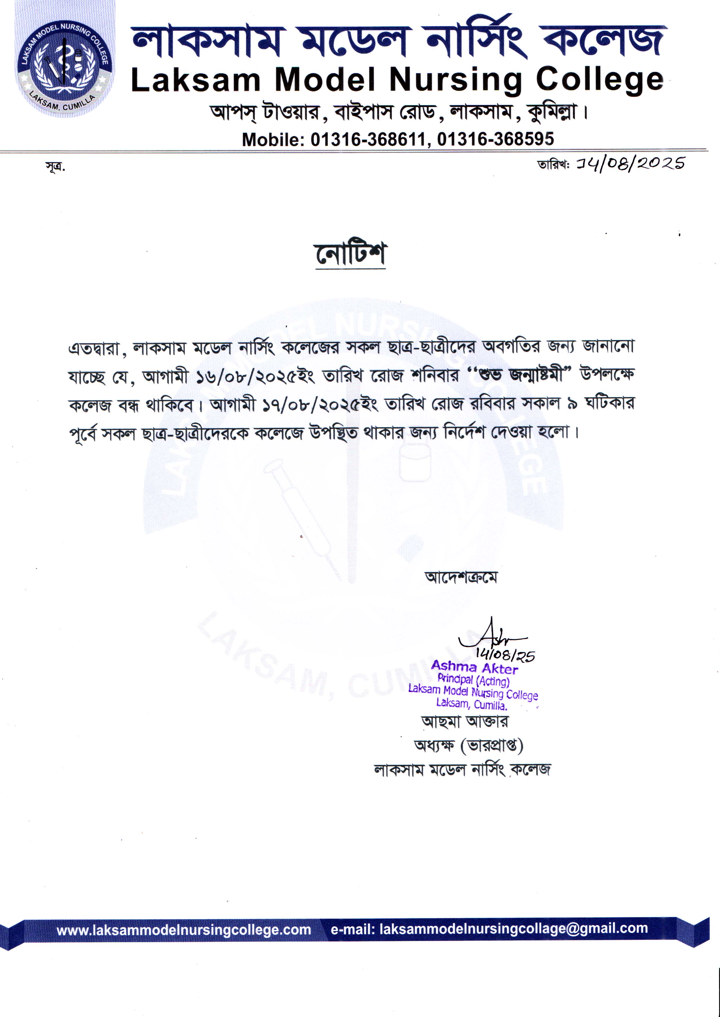 LAKSAM MODEL NURSING COLLEGE, LAKSAM, CUMILLA